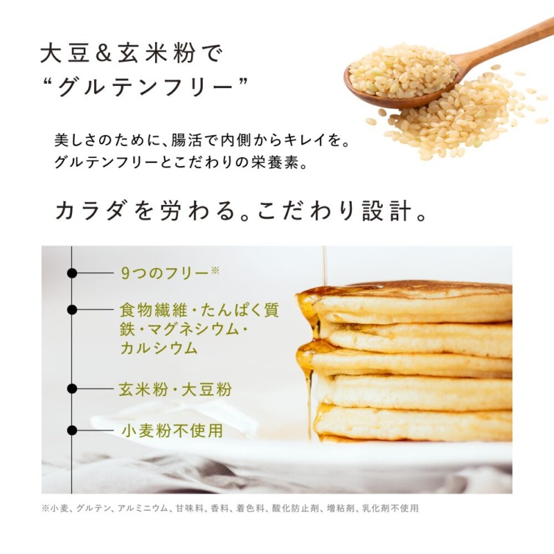 栄養バランスの偏りがちな現代の女性にうれしいパンケーキ粉です。