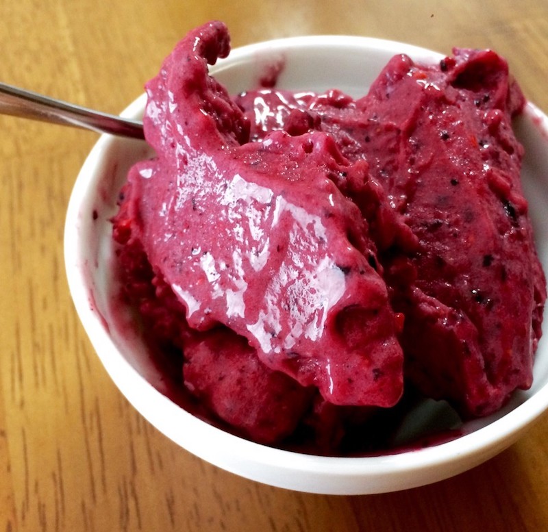 このベリージェラートは、前に紹介した「バナナジェラート」の応用編です。