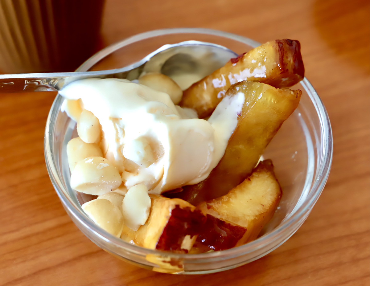 外はカリッ、中はほくっとしたお芋は、バニラアイスとの相性もバツグンですよ。
