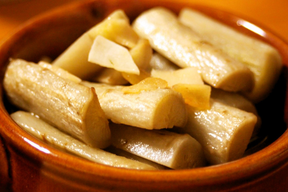 白ワインにも、お弁当の隙間にもぴったり、新ごぼうのコンフィです。