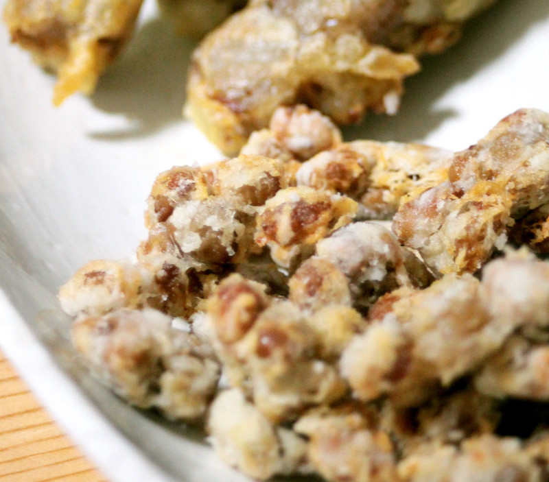 納豆をスプーンですくって、カラッと揚げる。