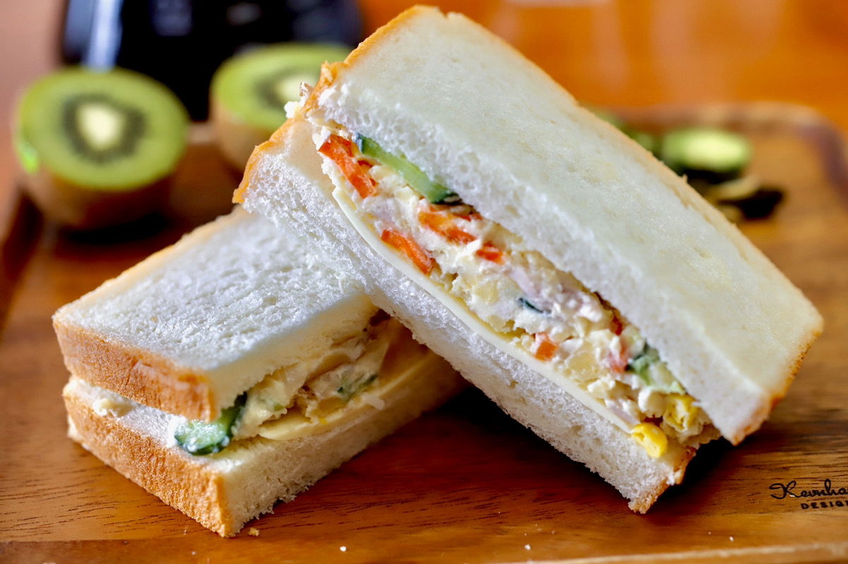 マヨネーズのカロリーや、じゃがいもの糖質のことを考えて、マヨネーズの半量をヨーグルトに置き換え、じゃがいもと具材を半々の配合にしています。