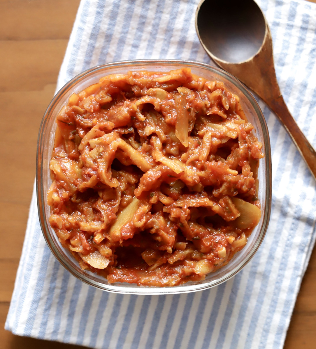 トマトソースが切り干し大根に染みて、いくらでも食べられる美味しさ