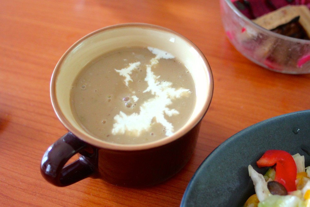 ■栗の水分によってスープの濃度も変わってくるので、豆乳や水を加えて好みの濃度にのばしてください。