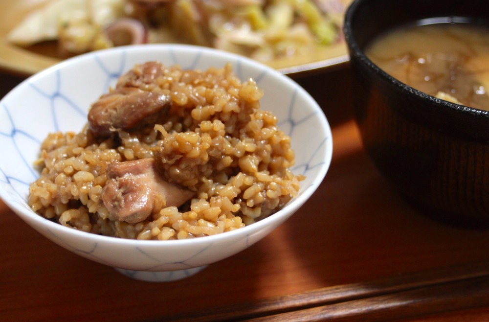 食べやすく切った鶏肉or油揚げと、切り干し大根、昆布を米の上にのせて、炊飯スイッチオン。