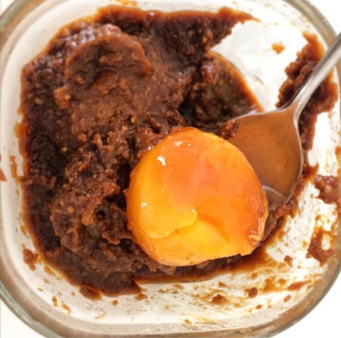 黄身と白身を分け(半解凍のうちに分けられます)、黄身のほうを醤油+みりんにひたひたに漬けて半日〜一晩おく。