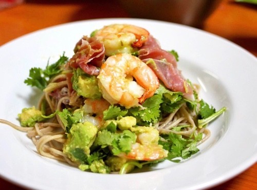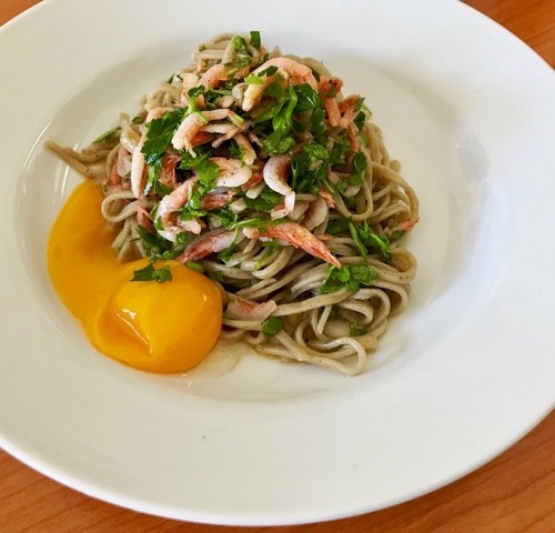 茹で海老やアボカド、パクチー、生ハムなども蕎麦には合いますよ。