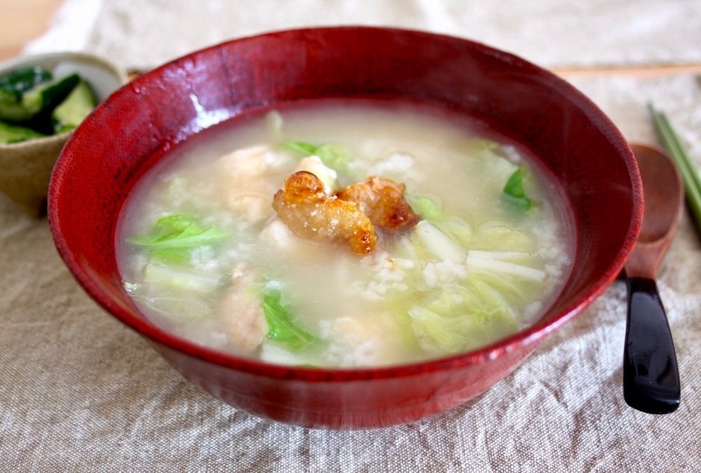 残った汁にご飯と白菜、水を適量足して、粥状になるまで煮る。